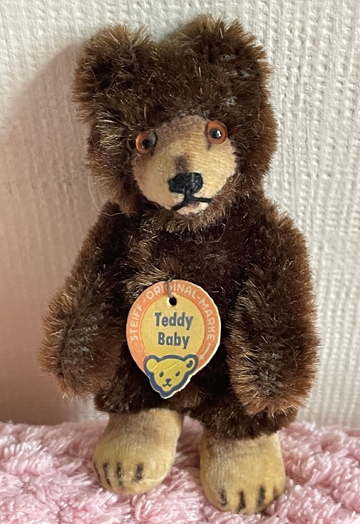 ‘LULA’ VERY RARE ORIGINAL 1950S MINIATURE STEIFF TEDDY BABY WITH A CHEST LABEL