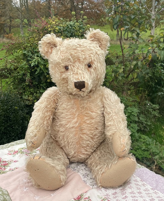 Rare large 26″ (67cm) very old, antique Steiff teddy bear for sale. US-Zone label made in the late 1940s in the US-occupied zone of Germany. www.oldteddybearshop.co.uk