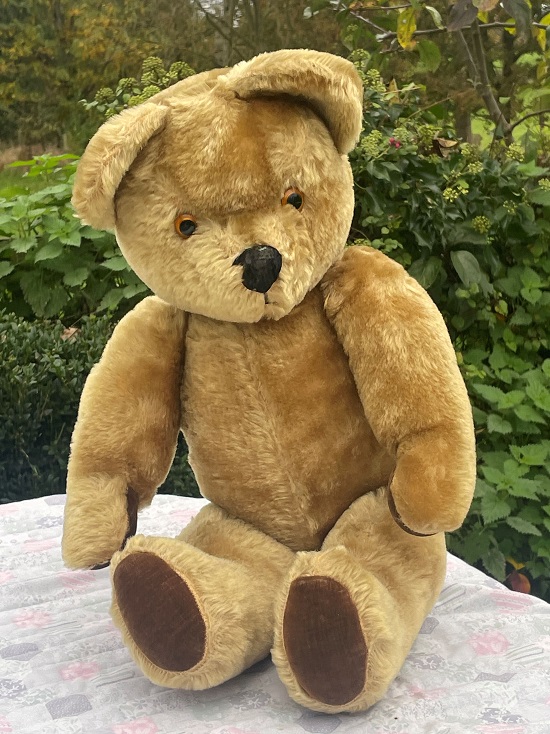 OLD CHILDHOOD TEDDY BEAR FOR SALE BY THE FAMOUS UK BEAR MAKER ‘PEDIGREE’ WITH LABEL.