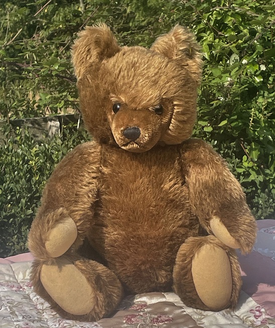 Butterscotch is a lovely vintage Steiff mohair jointed bear. She has her Steiff butto and stock label in her ear. Her height standing is 13″ (34cm) working tilt growler she is a talkative bear. Her mohair is a distressed type, long and fluffy . Some age to her c.1990s, good for age. Email for her photo file £70
