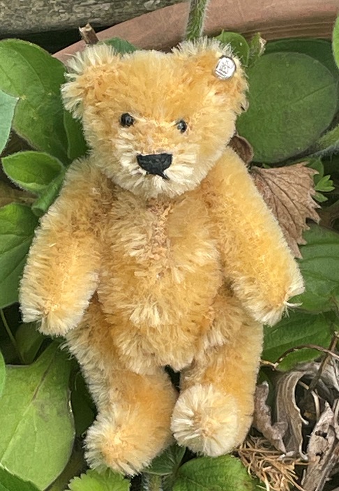 ‘Little Lottie’ is a small bear with a huge personality. With her pretty heart-shaped face a very pretty bear. She is from the 1960s with mohair fur, original ribbon, fully jointed, height 6.5″ (16cm) In very good for her age, and no longer has a button or tags. These older Steiff mask-type bears are quite hard to find now. Email for photo file £60