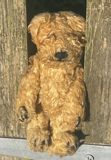 Cookie is a wonderful old 1960s bear from Europe sold in the UK at the time. He has silky plush fur, two colour plastic eyes, is fully jointed. His height standing is 21″ (53cm) Overall in good condition for his age having been well cared for. Some age discolouration to his fur on his white pads. He is a lovely bear with a lovely face. Email for his photo file. £75