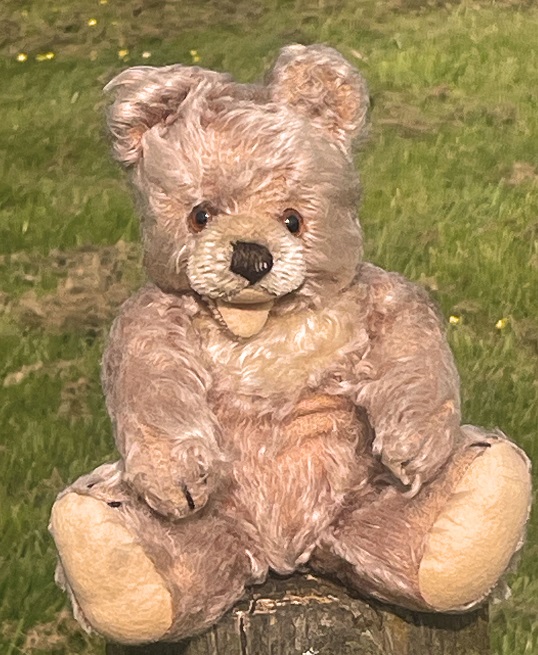 Betrina is a hard to find older Steiff Zotty bear from the 1950’s with cinnamon colour mohair. She is fully jointed with glass eyes. Height standing 11″ (28cm) squeaker no longer works, no longer has a button or tags, some age wear/colour fade to her mohair and felt pads. But she is a great character a lovely bear. Email for her photo file £45