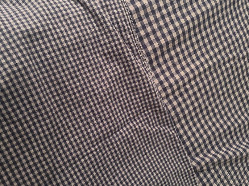An old brushed cotton type sheet that is different on either side. As two sheets are sewn together so each side is different. It looks like old camping or school fabric, possibly. There is some age to it c.1960s, possibly older. It has also been cut down from a larger size, and this piece is quite generous